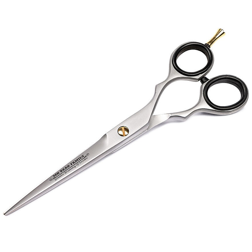 Mr Bear Family Grooming Scissor RVS is vervaardigd van hoogwaardig Japans roestvrij staal, met een lengte van 15 cm. Met een hardheid van 54-56 Rockwell biedt deze schaar uitstekende snijprestaties en duurzaamheid. Het Mr Bear Family logo is elegant gegraveerd aan één zijde, waardoor het een unieke en stijlvolle uitstraling heeft. Met deze professionele schaar ben je verzekerd van nauwkeurigheid en comfort tijdens het verzorgen en stylen van je baard en snor. Voeg deze kwaliteitsschaar toe aan je verzorgingsroutine en creëer de perfecte look met gemak.