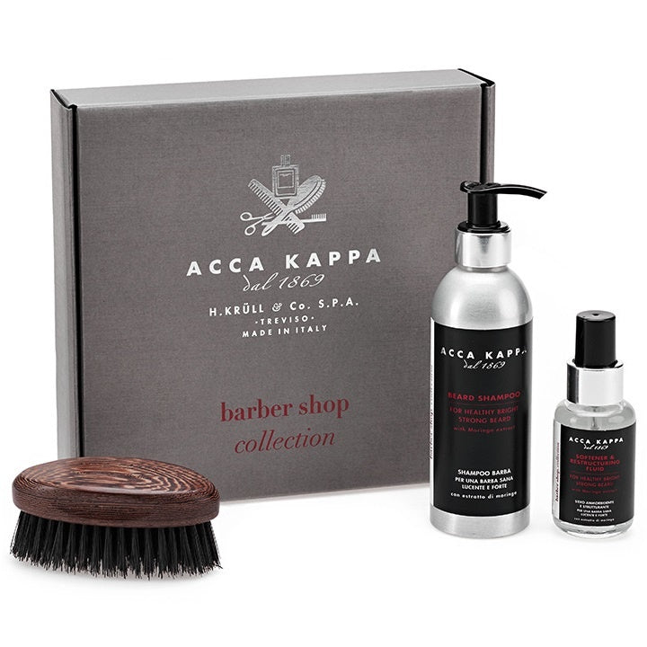 Acca Kappa Barbershop Collection Baardset biedt de ultieme verzorging voor een perfect gestylede baard. Deze luxe set bevat alles wat je nodig hebt voor een complete baardverzorging: een premium baardshampoo, voedende baardolie en een effectieve baardborstel. Elk product is zorgvuldig samengesteld met natuurlijke ingrediënten, die samen zorgen voor een sterke, gezonde en glanzende baard. De handgemaakte baardborstel, gemaakt van duurzaam wengéhout en everzwijnhaar, zorgt voor een effectieve reiniging en verzorging van je baard zonder irritatie. De set is ideaal voor dagelijks gebruik en is perfect voor mannen die waarde hechten aan zowel de gezondheid als de uitstraling van hun baard.