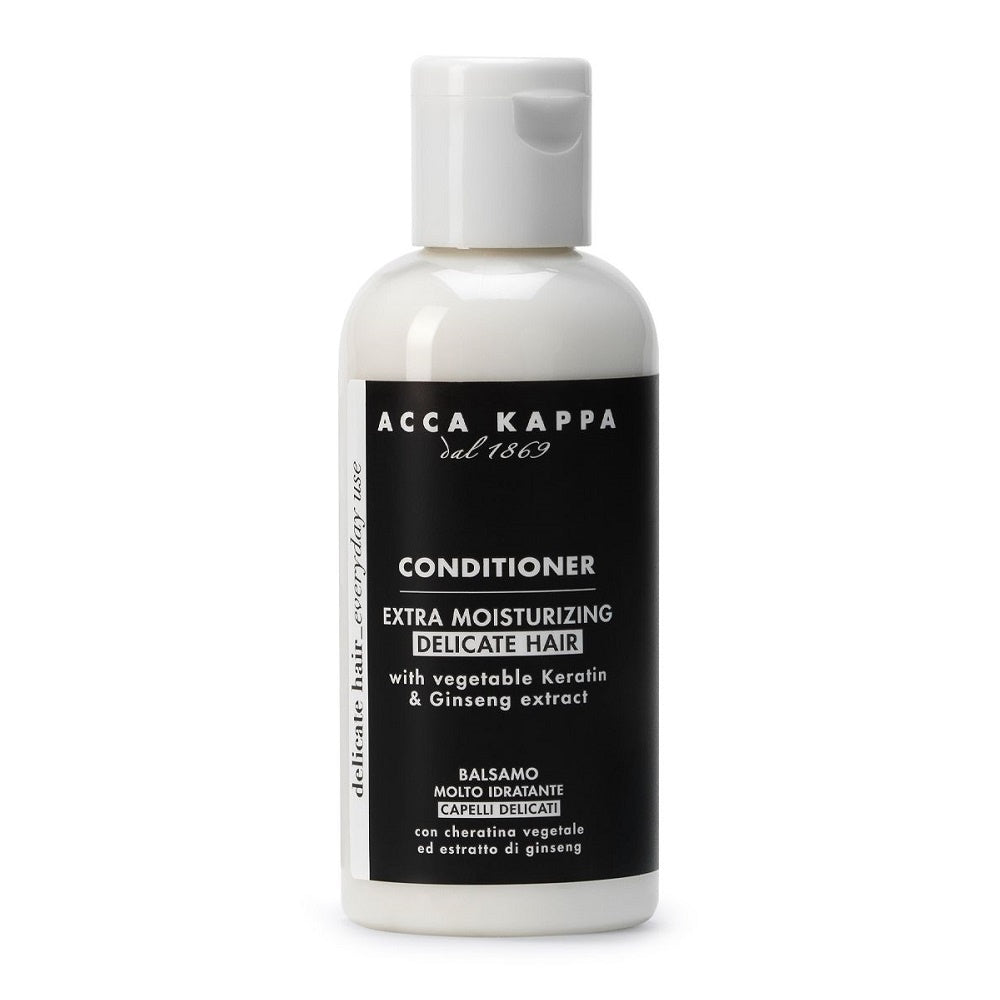 Acca Kappa White Moss Conditioner Travel is rijk aan plantaardige actieve ingrediënten die je haar intensief hydrateren en voeden. De conditioner bevat plantaardige keratine, die aminozuren van plantaardige oorsprong levert met een structuur die lijkt op de natuurlijke keratine van je haar. Deze keratine dringt diep in het haar door, herstructureert het efficiënt en houdt het tegelijkertijd goed gehydrateerd dankzij de unieke capaciteit om water op te vangen en te transporteren. Daarnaast is ginsengextract toegevoegd, bekend om zijn stimulerende eigenschappen die het haar revitaliseren en verfrissen. Samen zorgen deze ingrediënten voor een zijdezachte, gladde textuur en een gezonde glans, terwijl je haar wordt verzorgd en versterkt.