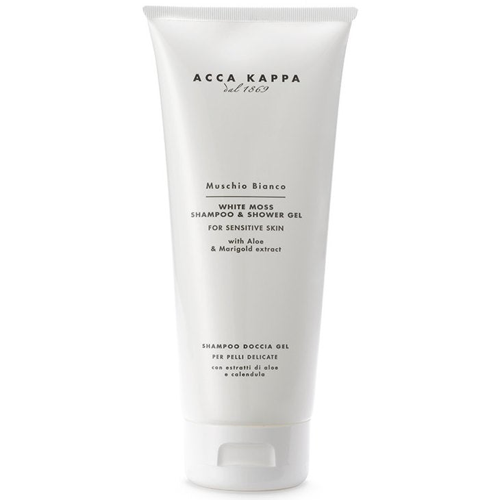 Acca Kappa White Moss Shampoo & Douchegel heeft een uiterst delicate formule die zowel haar als lichaam met de grootste zorg reinigt. Verrijkt met aloë vera en goudsbloem, biedt deze gel hydraterende eigenschappen die de huid zacht en fluweelzacht maken, terwijl het haar soepel en glanzend wordt. De delicate oppervlakteactieve stoffen, allemaal van plantaardige oorsprong, reinigen effectief zonder de huid te beschadigen. Deze milde ingrediënten zorgen voor een grondige maar zachte reiniging, die de natuurlijke balans van huid en haar respecteert en behoudt.