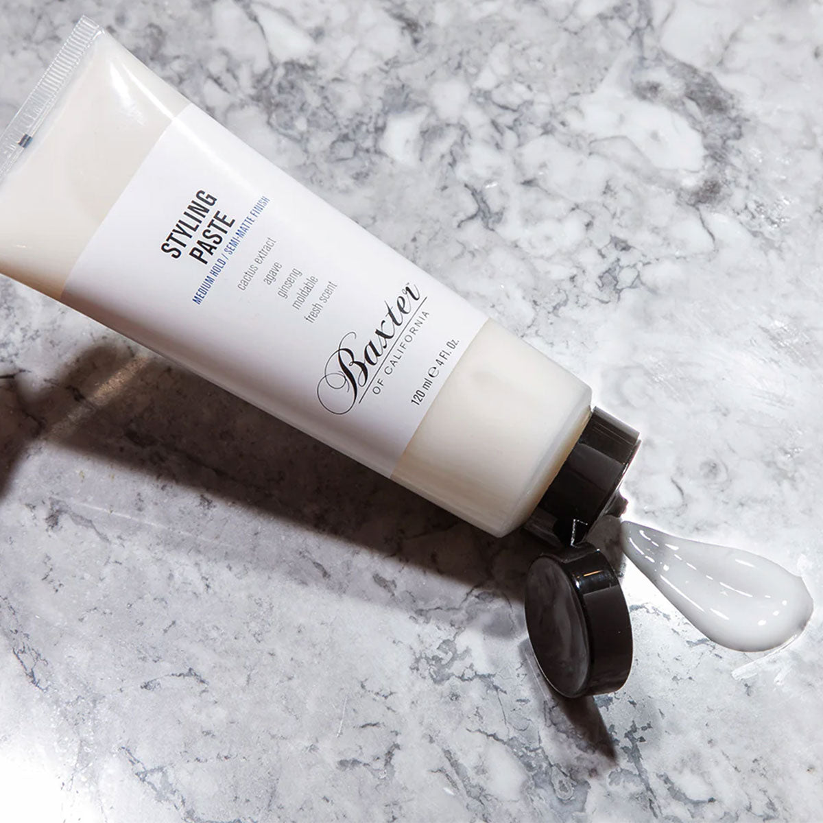 Baxter of California Styling Paste biedt veelzijdige styling met een medium hold en een natuurlijke afwerking. Deze paste is perfect voor het creëren van zowel casual als verfijnde looks, met een flexibele textuur die je de hele dag door kunt aanpassen. Verrijkt met voedende ingrediënten, hydrateert en verzacht het je haar, terwijl het een lichte glans toevoegt zonder plakkerigheid. Ideaal voor dagelijks gebruik, biedt deze styling paste een betrouwbare en veelzijdige styling voor een verzorgd en gezond kapsel.