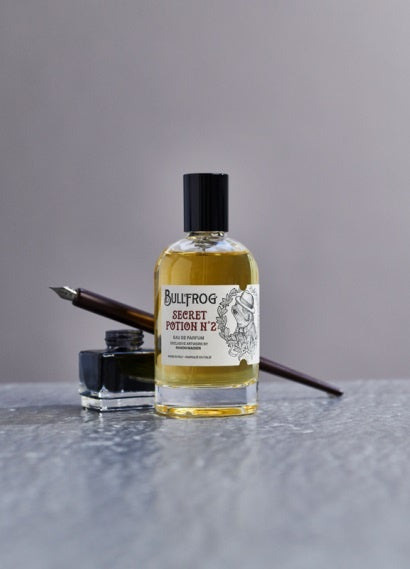 Bullfrog Eau de Parfum N.2 Secret Potion Sample is een geur geïnspireerd op het atelier van een kunstenaar. Een geheime en zeer uitgebreide geurcocktail, die de traditionele elementen van de sfeer van het geroezemoes van het atelier waarin de kunstenaar werkt meeneemt. De noten van inkt en leer, afgewisseld met scherpe metaal tonen, geven hem een stoer mannelijke karakter. Nu in dit handige sampleformaat om uit te testen, mee te nemen op reis of cadeau te doen.