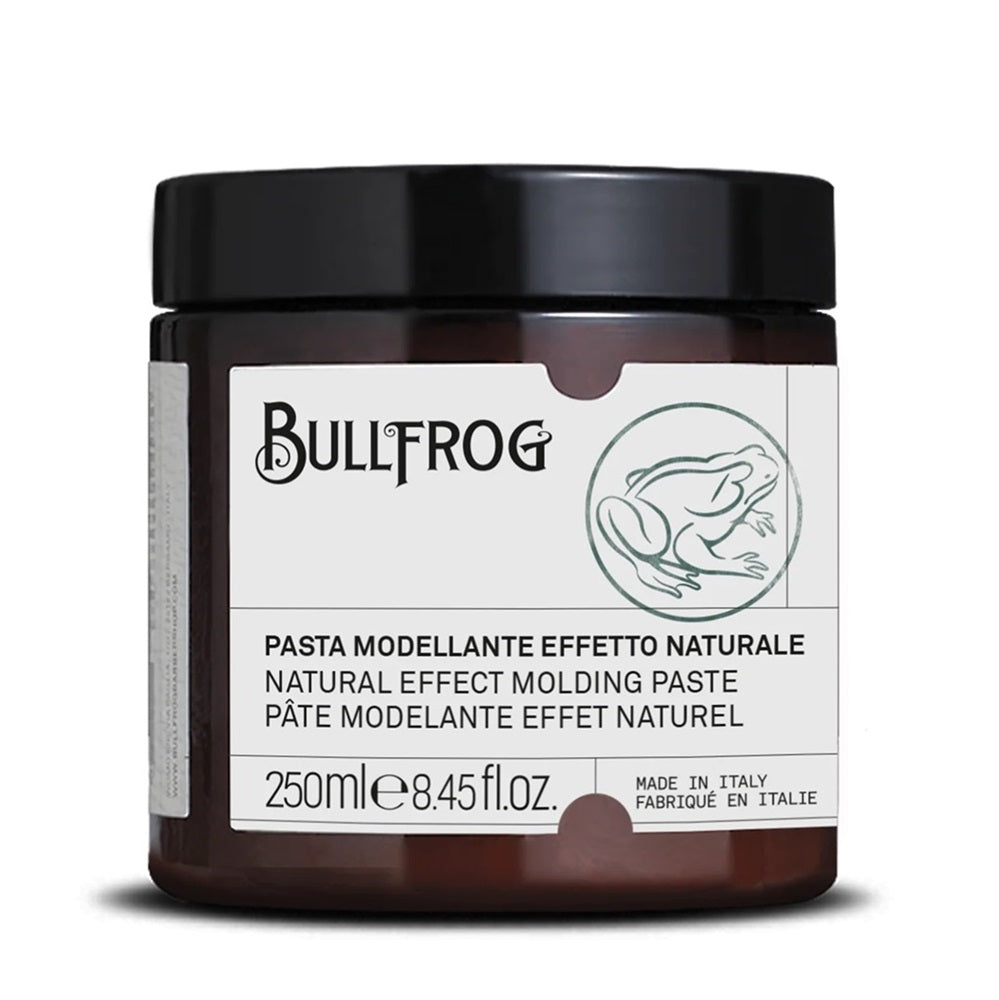 Bullfrog Natural Effect Molding Paste is het ultieme stylingproduct voor het creëren van natuurlijke looks die eenvoudig opnieuw te vormen zijn. Dit unieke product is speciaal ontwikkeld om een zachte, natuurlijke stijl te bieden met een elegante matte finish. De formule bevat een innovatieve geur die zorgvuldig is samengesteld om het luxe effect van de warme handdoek van de kapper na te bootsen, met een subtiele mix van muskus en talk. Deze discrete geur voegt een extra dimensie van verfijning toe aan je verzorgingsroutine, waardoor je niet alleen een perfecte look krijgt, maar ook een aangename, professionele ervaring beleeft.