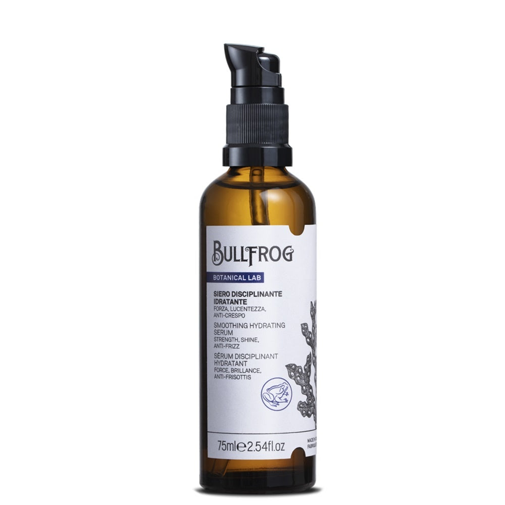 Bullfrog Smoothing Hydrating Serum is een geavanceerd product met een zachte en lichtgewicht textuur dat het haar verzacht, pluis tegengaat en een stralende glans toevoegt. Deze unieke formule is verrijkt met hyaluronzuur, wat diepe hydratatie biedt aan zowel het haar als de hoofdhuid, waardoor pluizen wordt verminderd en het haar sterker, glanzender en makkelijker doorkambaar wordt. Daarnaast bevat het serum isochrysis galbana, een krachtig natuurlijk ingrediënt dat het haar verdikt, volume toevoegt en haaruitval tegengaat, waardoor het geschikt is voor diverse haartypes, vooral steil haar.