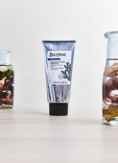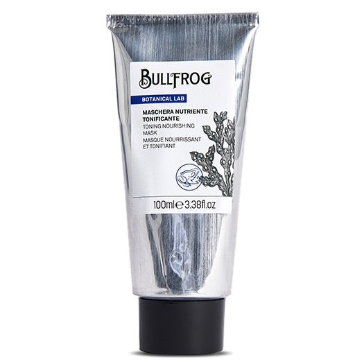 Bullfrog Toning Nourishing Mask bezit een energieke geur, geïnspireerd door de zee-elementen van de formule.