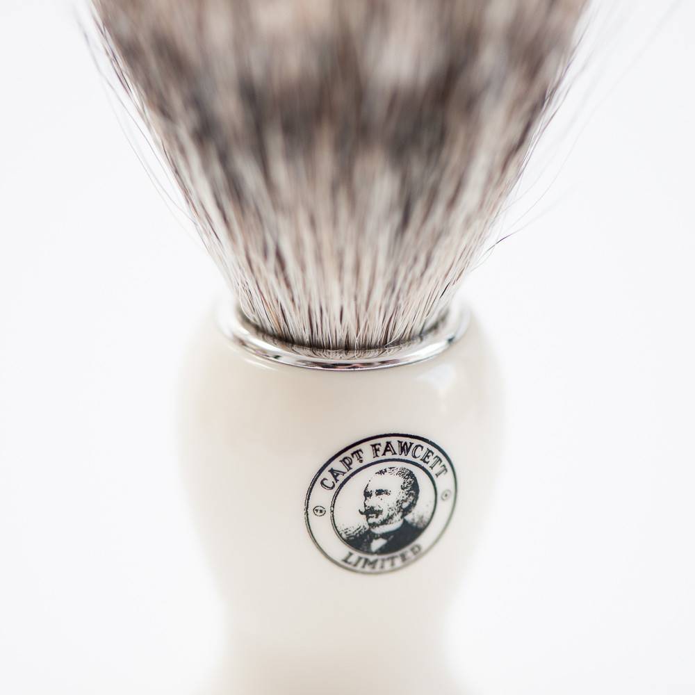 Captain Fawcett's Badger Scheerkwast is vervaardigd met zorgvuldig geselecteerd nep dassenhaar, waardoor het een ethisch en diervriendelijk alternatief biedt voor traditionele dassenhaar kwasten. Het imitatie ivoren handvat straalt klasse uit en ligt comfortabel in de hand, terwijl de chromen kraag en voet zorgen voor duurzaamheid en een tijdloze uitstraling. Met oog voor detail en vakmanschap is deze scheerkwast ontworpen om zowel de ecobewuste als de veeleisende scheerliefhebber te bekoren, terwijl het een perfecte schuimvorming en een soepele, zachte scheerervaring biedt. Kies voor Captain Fawcett's Badger Scheerkwast en geniet van hoogwaardige prestaties.