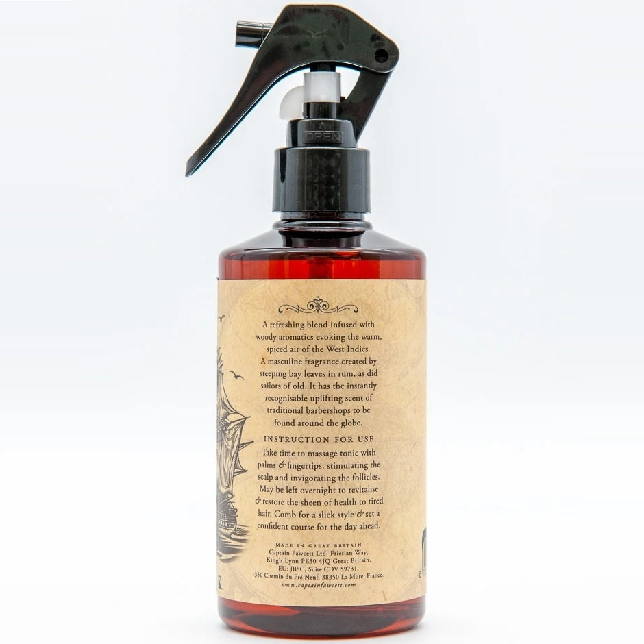 Captain Fawcett Bay Rum Hair Tonic is een waar genot voor de zintuigen. De klassieke en tijdloze West-Indische Bay Rum-geur is rijk, warm en verleidelijk, waardoor je haar een subtiele maar onvergetelijke geur krijgt. Het brengt de charme van vervlogen tijden tot leven en omhult je met een aura van mannelijkheid en elegantie.