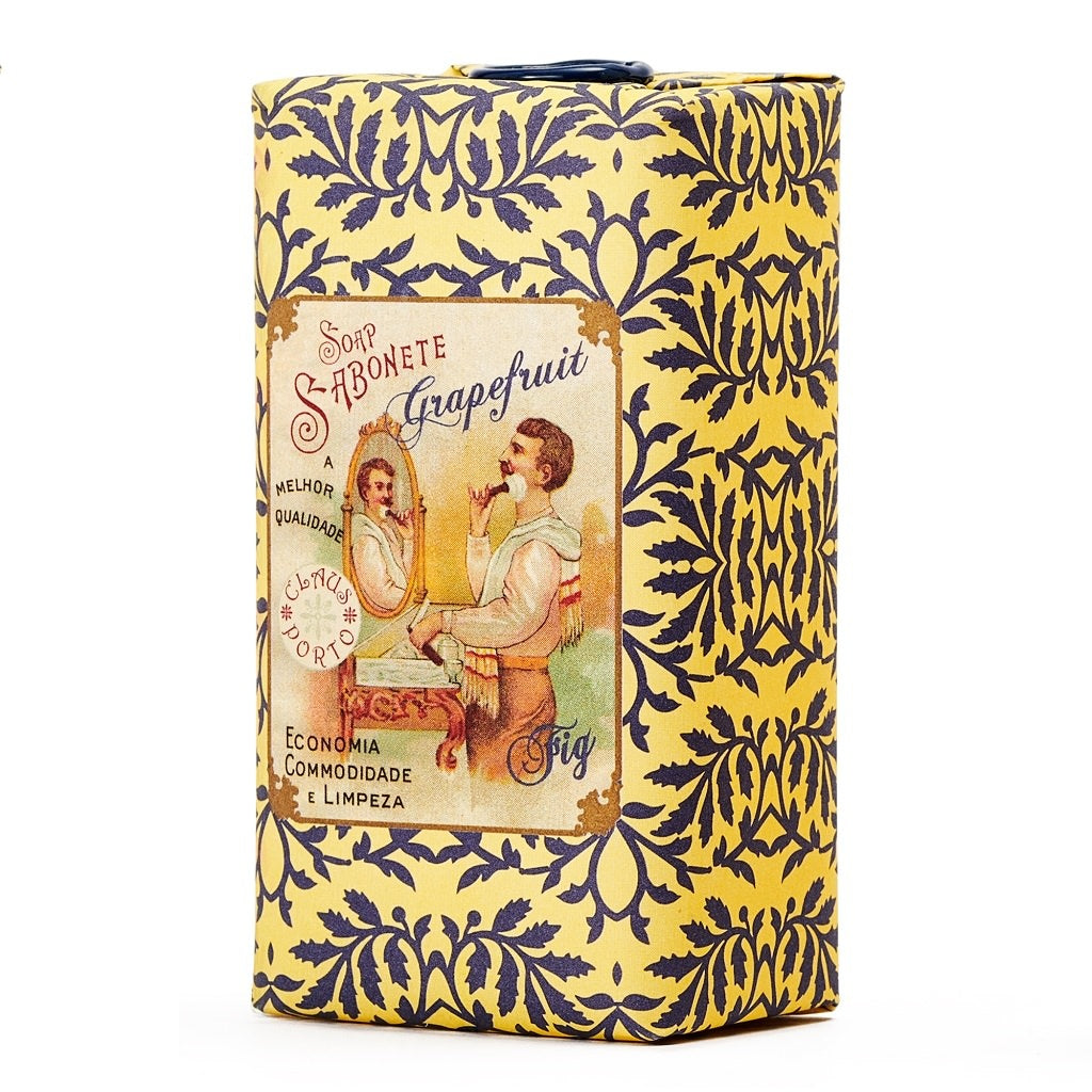 Claus Porto Soap Bar Barbear Grapefruit Fig opent met de verfrissende en sprankelende citrusnoten, gecombineerd met de zoete geur van vijg, die de zintuigen direct prikkelen. Het hart bevat de levendige geur van grapefruit, versterkt door een prachtige roos, wat zorgt voor een frisse en bloemige diepte. De basisnoten van vanille en houtachtige akkoorden geven de geur een warme, sensuele en verfijnde afronding, waardoor een frisse en luxueuze geur ontstaat. Een perfecte balans tussen fruitige frisheid en zachte warmte.