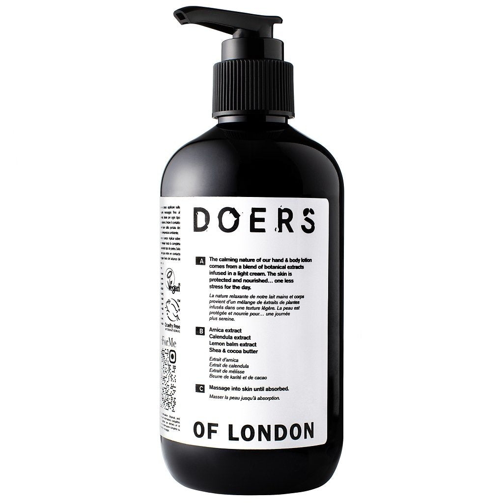 Doers of London Hand & Body Lotion is een luxueuze en rustgevende verzorging voor zowel de handen als het lichaam. Deze lotion biedt het beste van beide werelden door een kalmerend karakter te combineren met een lichte textuur. Verrijkt met een mix van krachtige botanische extracten, voedt en beschermt het de huid intensief. Je huid wordt gehydrateerd, gevoed en gekalmeerd, waardoor je een heerlijk ontspannen gevoel ervaart. De formule is vegan, dierproefvrij en vrij van siliconen, parabenen en kunstmatige geur- en kleurstoffen. Of je nu behoefte hebt aan hydratatie na het wassen van je handen of een algehele verzorging van je lichaam, Doers of London Hand & Body Lotion biedt de ultieme verwennerij voor een stralende en ontspannen huid.