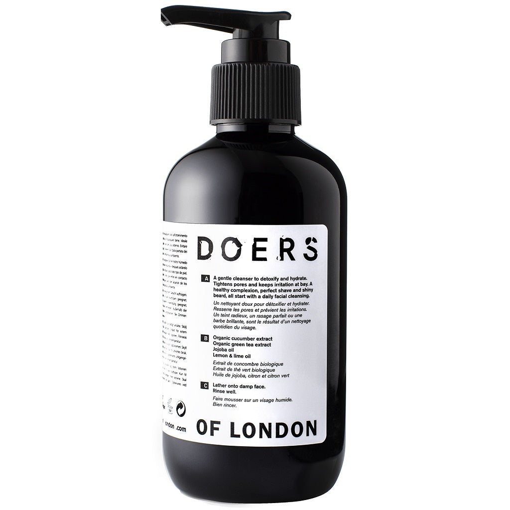 Doers of London Facial Cleanser 200 mlDoers of London Facial Cleanser is een krachtige en effectieve gezichtsreiniger die onzuiverheden en overtollig talg verwijdert zonder uit te drogen. Met natuurlijke ingrediënten zoals komkommerextract, groene thee-extract en jojoba-olie reinigt, verzorgt en balanceert deze cleanser de huid. Het plantaardig melkzuur exfolieert zachtjes en voorkomt puistjes en irritatie. Geef je huid de zorg die het verdient met deze hoogwaardige cleanser voor een stralende teint.