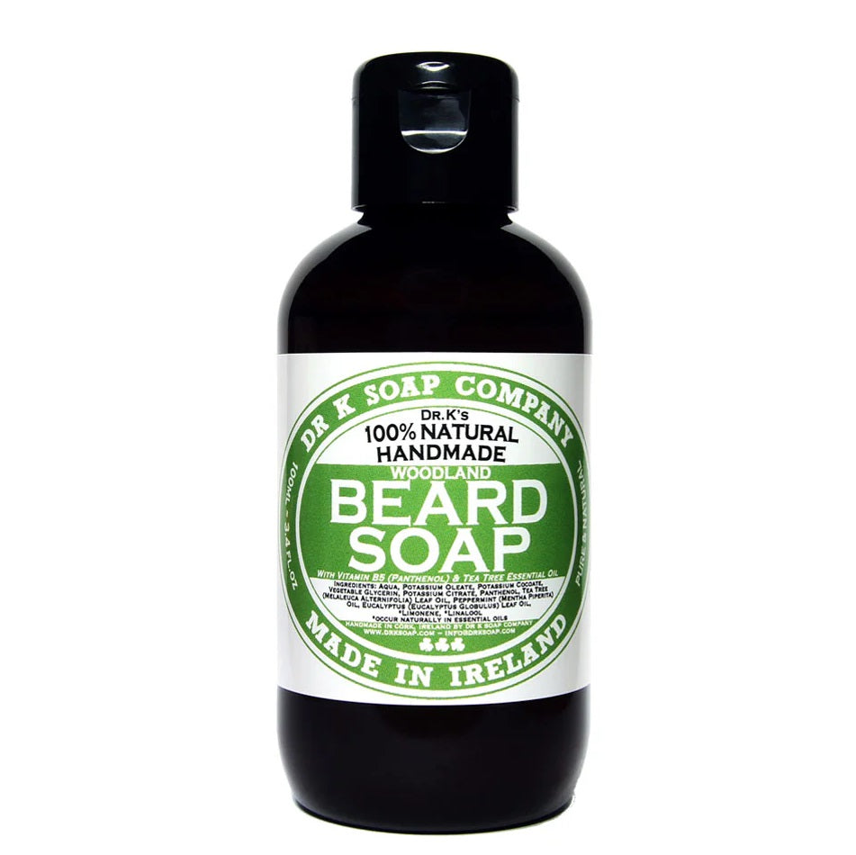 Dr K Soap Company Baardzeep Woodland is geformuleerd als een zachte, vloeibare zeep op basis van hoogwaardige plantaardige oliën, doordrenkt met essentiële ingrediënten zoals panthenol (pro-vitamine B5) en glycerine. Deze unieke combinatie is speciaal ontworpen om niet alleen de baardharen mild en grondig te reinigen, maar ook om de onderliggende huid te voeden en te hydrateren. De toevoeging van panthenol en glycerine biedt een luxueuze verzorging, waardoor de baard zijdezacht wordt en een natuurlijke glans krijgt. Deze ambachtelijk vervaardigde baardzeep is vrij van parabenen en kunstmatige kleurstoffen, en garandeert daarmee een gezond ogende baard met een de warme en frisse geur van Woodland, geschikt voor de moderne man die streeft naar een verzorgde en stralende baard.