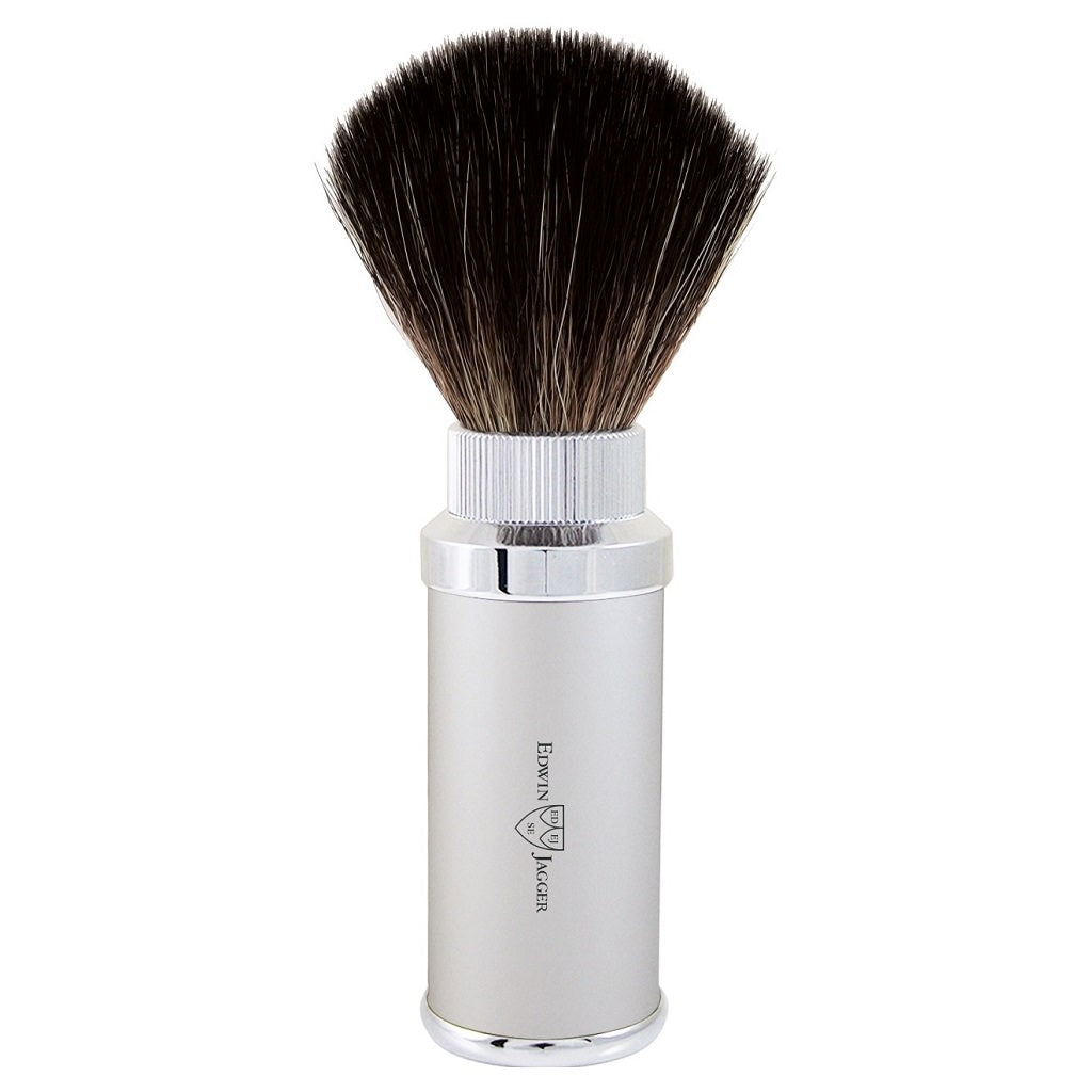 Edwin Jagger Reis Scheerkwast Black Fibre Zilver is een ideale scheerkwast voor de reizende gentleman die niet wil inleveren op scheercomfort. Deze scheerkwast combineert een compact, lichtgewicht ontwerp met hoogwaardige synthetische Black Fibre haren die soepel schuim creëren met scheerzeep of -crème. Het stijlvolle handvat van duurzaam zilver kunststof is ontworpen voor een stevige grip en moeiteloos gebruik. De borstelharen zijn diervriendelijk, snel drogend en eenvoudig te reinigen, wat deze scheerkwast perfect maakt voor onderweg. Met zijn praktische afschroefbare houder blijft de kwast goed beschermd in de bagage, zodat je ook tijdens je reizen kunt genieten van een verfijnde scheerervaring.