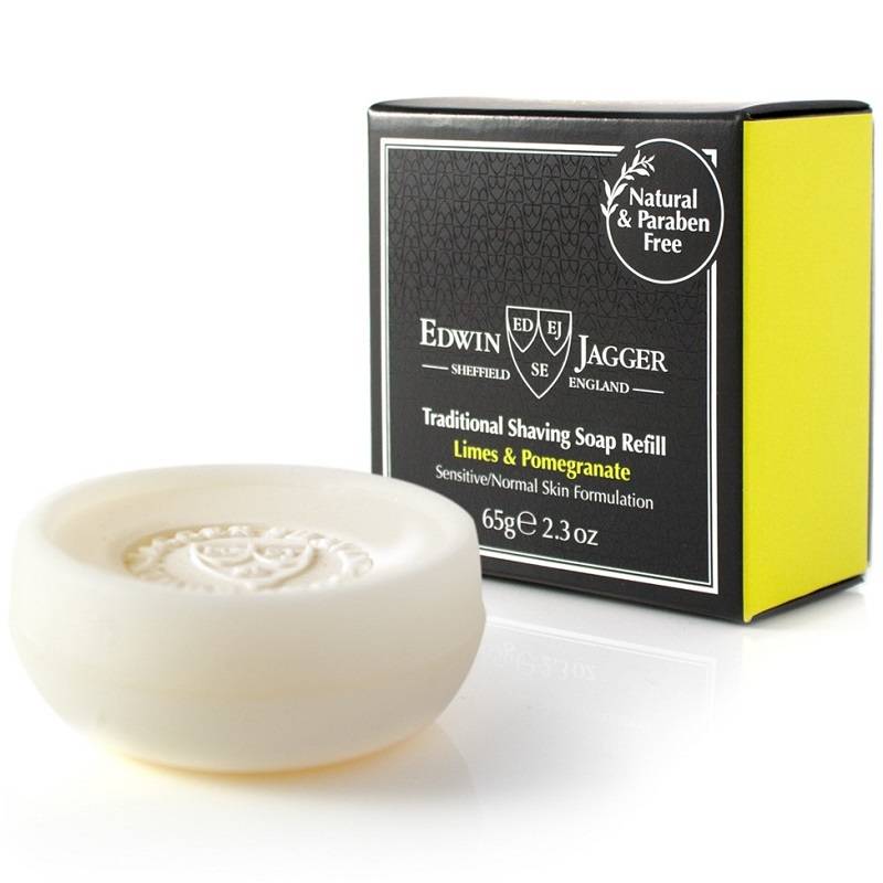 Edwin Jagger Scheerzeep Limes & Pomegranate - Navulverpakking is geformuleerd met natuurlijke ingrediënten die zorgen voor een verzorgende en verfrissende scheerbeurt. Glycerine hydrateert de huid diep, terwijl het tegelijkertijd voorkomt dat de huid uitdroogt, voor een soepele scheerbeurt. Limoenextract biedt een frisheid en revitaliseert de huid, terwijl granaatappelextract de huid kalmeert en helpt te herstellen van de stress van het scheren. De formule bevat geen parabenen, waardoor het een veilige keuze is voor alle huidtypes. Het rijke schuim dat door de zeep wordt gecreëerd zorgt voor een gladde en comfortabele scheerbeurt, terwijl de huid zacht en gehydrateerd blijft.