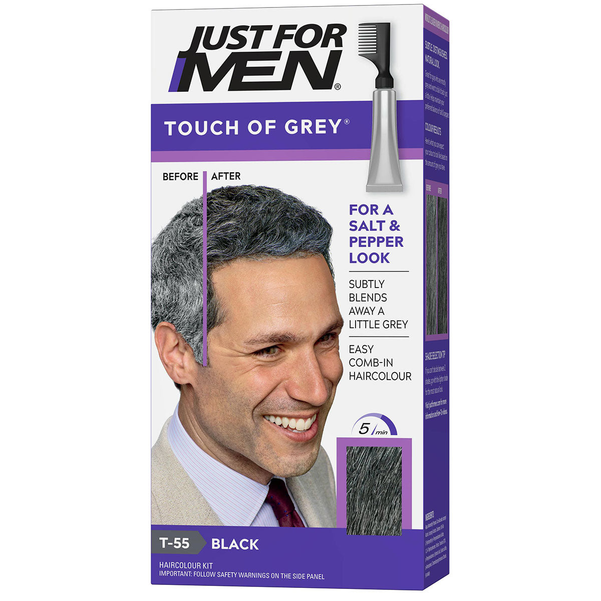 Just For Men Haarverf - Grijs is speciaal ontwikkeld voor mannen die een meer gebalanceerde mix van grijs en natuurlijk haar willen behouden. Het vervaagt direct het grijs, maar bedekt niet alles, waardoor je een subtiele, peper & zout kleur krijgt die er natuurlijk uitziet. Het gebruik is eenvoudig: breng de verf aan en kam het door je haar. Het werkt snel en effectief, met een resultaat in slechts 5 minuten. Deze formule zorgt ervoor dat je grijze haren een zachte, frisse uitstraling krijgen zonder dat het te intens is, zodat je een mooie balans behoudt.