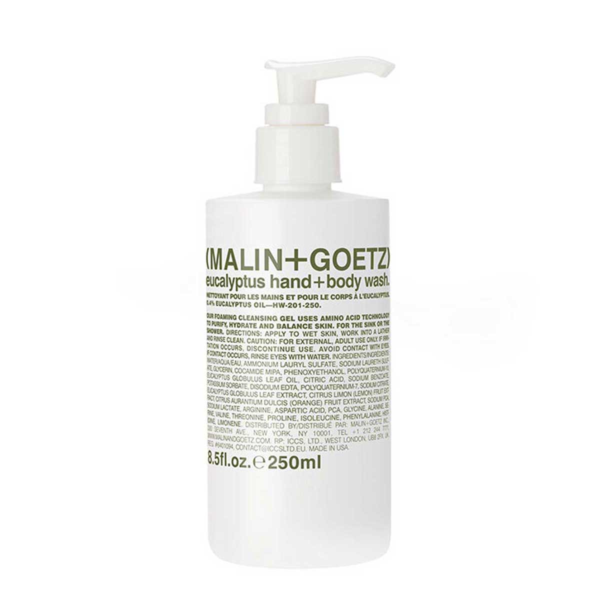 Malin+Goetz Eucalyptus Hand + Body Wash is een veelzijdige reinigingsgel die zowel de handen als het lichaam grondig reinigt. Deze zachte formule creëert een rijk schuim dat effectief vuil, zweet en onzuiverheden verwijdert zonder de huid uit te drogen. Geschikt voor alle huidtypes, inclusief de gevoelige huid, en ontworpen voor dagelijks gebruik. De frisse eucalyptusgeur zuivert en verfrist, terwijl de huid schoon en comfortabel aanvoelt na gebruik. Perfect voor een eenvoudige en doeltreffende verzorgingsroutine die reiniging en hydratatie in balans brengt.