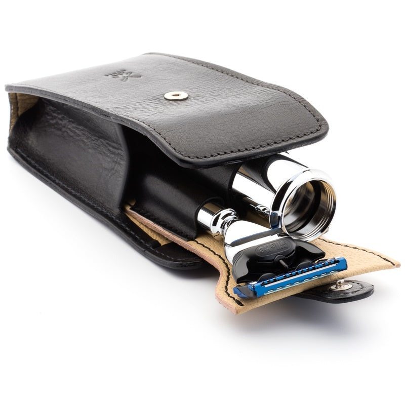 Muhle Reistas Zwart is een stijlvolle en praktische tas, ontworpen voor het vervoeren van je scheeraccessoires met gemak en elegantie. Gemaakt van hoogwaardig leer, biedt deze tas voldoende ruimte voor al je producten, zoals een scheermes, scheerkwast, en andere verzorgingsproducten. Het strakke ontwerp en de stevige sluiting zorgen ervoor dat je spullen veilig en georganiseerd blijven tijdens je reizen. De Muhle Reistas Zwart is een perfecte keuze voor zowel dagelijks gebruik en biedt een verfijnde uitstraling.