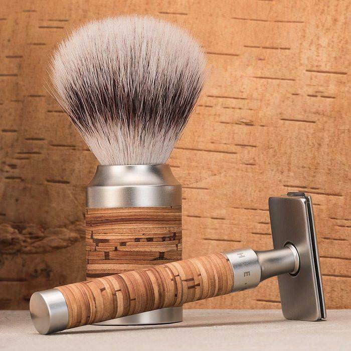 Muhle Double Edge Safety Razor Rocca Berkenschors is gemaakt van hoogwaardig roestvrij staal en een fineer afwerking van berkenschors. Het roestvrij staal zorgt voor stevigheid en een prettig gewicht in de hand. De gesloten kam biedt een comfortabele en veilige scheerbeurt. Het handvat is voorzien van een laag fineer berkenschorsfineer, dat niet alleen een warme, natuurlijke uitstraling geeft, maar ook extra grip biedt, zelfs met natte handen. Deze combinatie van robuuste materialen en natuurlijke details maakt het scheermes functioneel en stijlvol tegelijk.