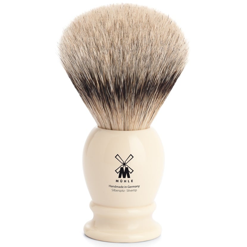 Muhle Scheerkwast Silvertip Classic (L) is een ideale keuze voor wie graag traditioneel scheert en zoekt naar een scheerkwast die lang meegaat en doet wat die belooft. De kwast is gemaakt van silvertip dassenharen, die zacht aanvoelen en goed schuim vasthouden. Dit maakt het inschuimen moeiteloos en zorgt voor een comfortabele scheerbeurt. Het handvat ligt stevig in de hand en is gemaakt van sterk kunststof waardoor de kwast lang meegaat. Een praktische en stijlvolle scheerkwast voor dagelijks gebruik.
