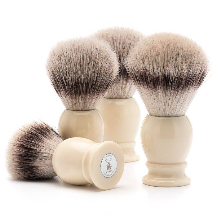 Muhle Scheerkwast Silvertip Fibre Classic (L) is gemaakt van hoogwaardige synthetische vezels die door Muhle zelf zijn ontwikkeld. Deze vezels zijn gelijkwaardig aan het natuurlijke silvertip dassen haar, met het voordeel dat ze minder kwetsbaar zijn en sneller drogen dan natuurlijke haren. De vezels voelen zacht aan op de huid en hebben een lange levensduur, wat zorgt voor een scheerkwast die dagelijks gebruikt kan worden. Het handvat is gemaakt van kunststof, wat het licht maakt en zorgt voor een stevige grip tijdens het scheren. Het kunststof is ook bestand tegen vocht, waardoor de kwast gemakkelijk te onderhouden is.