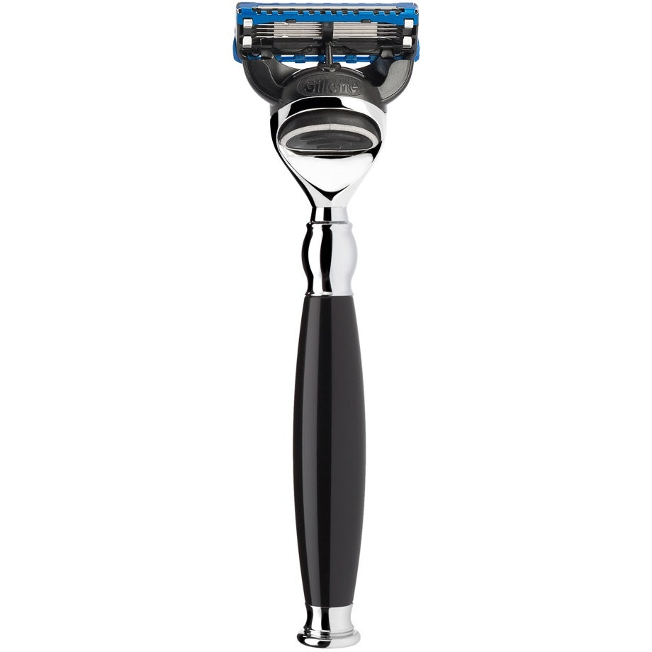 Muhle Fusion Scheermes Sophist Zwart biedt een combinatie van stijl en functionaliteit voor een comfortabele en nauwkeurige scheerbeurt. Het handvat is gemaakt van gepolijst edelhars, een sterk en krasbestendig materiaal dat zorgt voor een stevige grip en een luxe uitstraling. De scheerkop is compatibel met Gillette Fusion mesjes, wat een glad en precieze scheerbeurt garandeert. Door het uitgebalanceerde ontwerp ligt het mes prettig in de hand, waardoor het ideaal is voor wie op zoek is naar zowel kwaliteit als design.