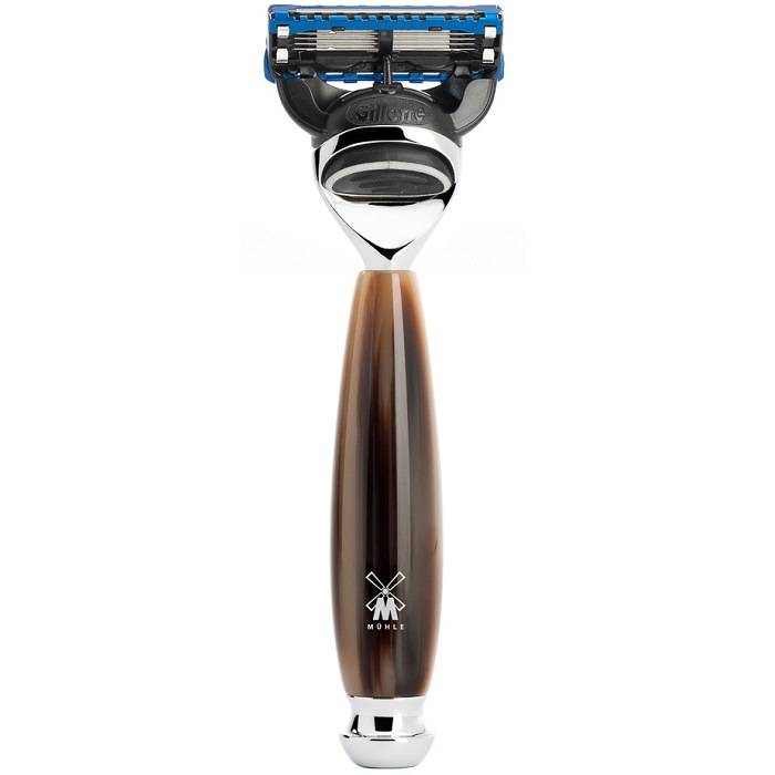 Muhle Fusion Scheermes Vivo Hoorn combineert elegantie met functionaliteit. Het handvat, met een hoornkleurige look, geeft het mes een unieke, stijlvolle uitstraling en biedt tegelijkertijd een comfortabele grip. Het mes is uitgerust met een Fusion scheerkop, die zorgt voor een uiterst glad resultaat. Door het innovatieve ontwerp en het gebruik van premium materialen, is dit scheermes niet alleen een prachtige toevoeging aan je scheerroutine, maar ook een duurzame keuze voor dagelijks gebruik. De perfecte keuze voor wie waarde hecht aan zowel functionaliteit als luxe.