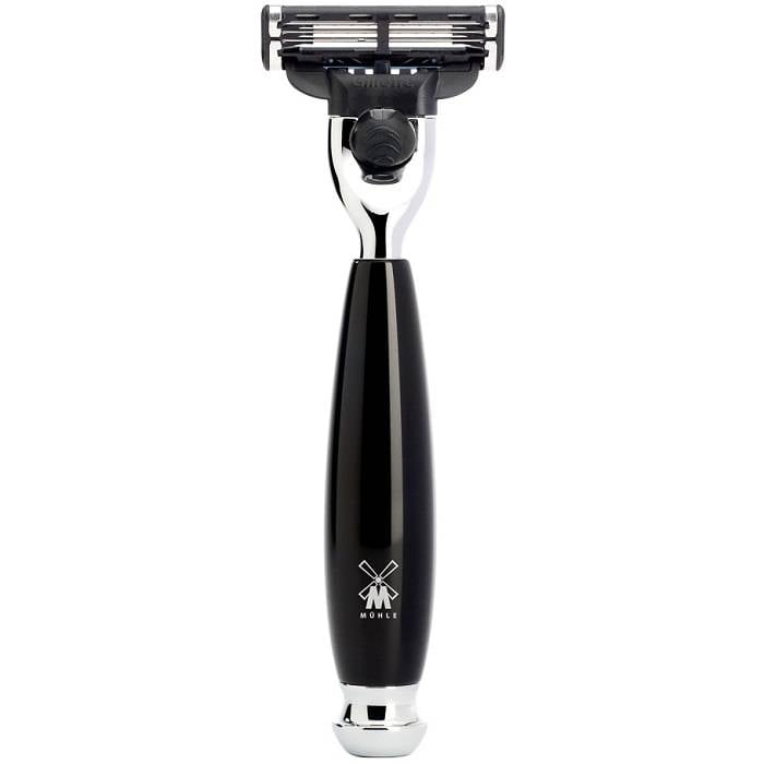Muhle Mach3 Scheermes Vivo Zwart combineert stijl en functionaliteit voor een comfortabele scheerbeurt. Het handvat is gemaakt van zwart edelhars, wat zorgt voor een luxe uitstraling en een stevige grip tijdens het scheren. Het scheermes is uitgerust met een Mach3 scheerkop, die zorgt voor een gladde en comfortabele huid. Of je nu een ervaren scheerder bent of net begint, dit scheermes biedt de perfecte balans tussen prestaties en design. Het duurzame zwart edelhars en de verfijnde afwerking maken dit scheermes tot een must have voor elke scheerliefhebber.