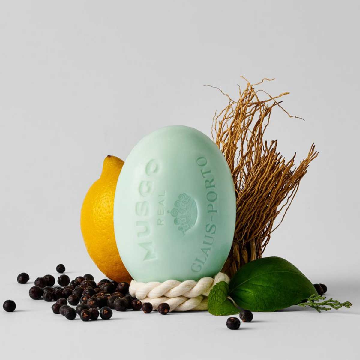 Musgo Real Soap on a Rope Clássico 22 is een verfijnde en verfrissende geur die de zintuigen prikkelt. De topnoten van bergamot, citroen en een ozonachtige noot zorgen voor een frisse, citrusachtige opening die meteen energie geeft. Het hart van de geur bevat jeneverbes, basilicum en munt, die een kruidige geur toevoegen, perfect voor een verfrissende ervaring. De basisnoten van cederhout, vetiver en muskus geven de geur diepte en een warme, aardse ondertoon, wat zorgt voor een subtiele, maar langdurige geur. Deze complexe geurcombinatie maakt de Musgo Real Soap on a Rope Clássico 22 tot een luxueuze keuze voor de dagelijkse verzorging.