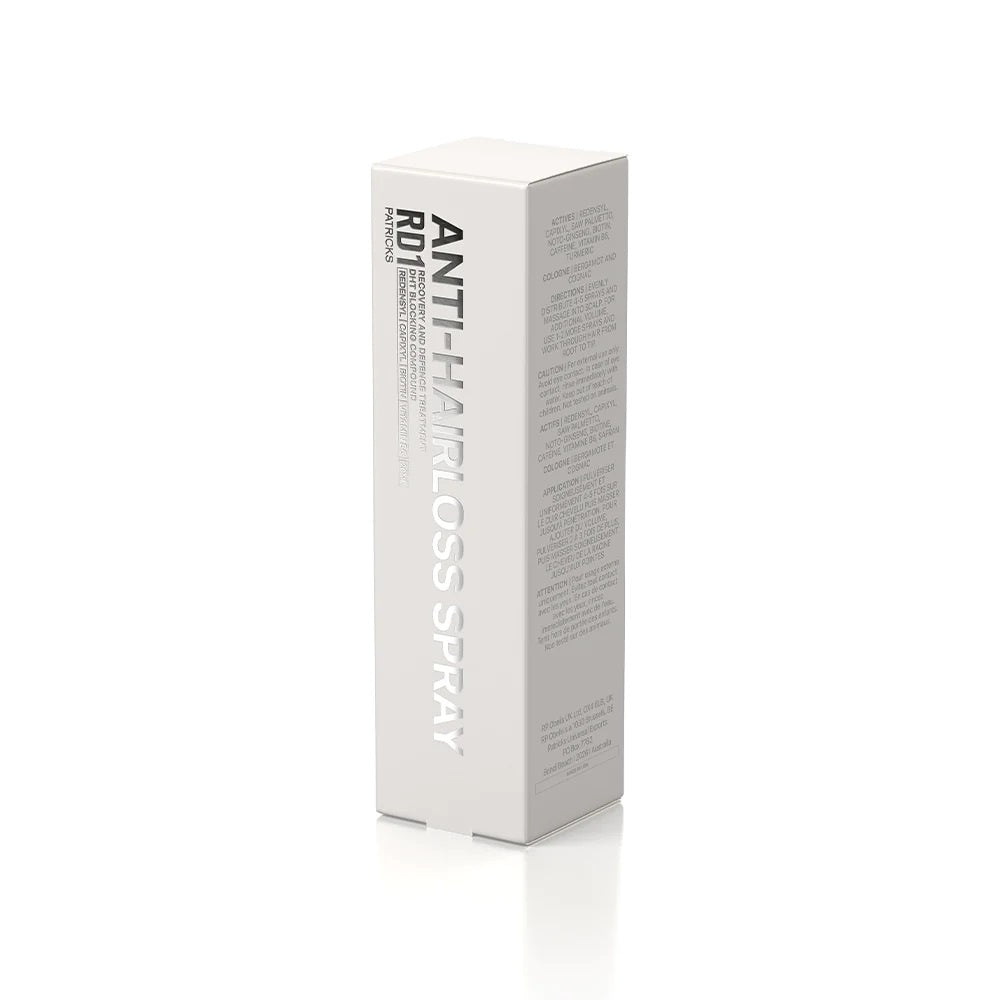 Patricks RD1 Anti-Hairloss Spray is jouw geheime wapen om haaruitval te verminderen en je haargroei te stimuleren. Deze krachtige spray zit boordevol speciale ingrediënten die je haar verzorgen op een manier die echt werkt. Redensyl draagt bij aan het verdikken van het haar, capixyl, een andere speciale mix, helpt haarzakjes te regenereren en te versterken. Capi-Secretys, afgeleid van kurkuma, houdt je haar langer in de groeifase, terwijl cafeïne en panthenol het geheel voeden en beschermen. Kortom, deze spray geeft je haar een boost van binnenuit, waardoor het er voller en gezonder uitziet. Ga zelfverzekerd de dag door met Patricks RD1 Anti-Hairloss Spray.