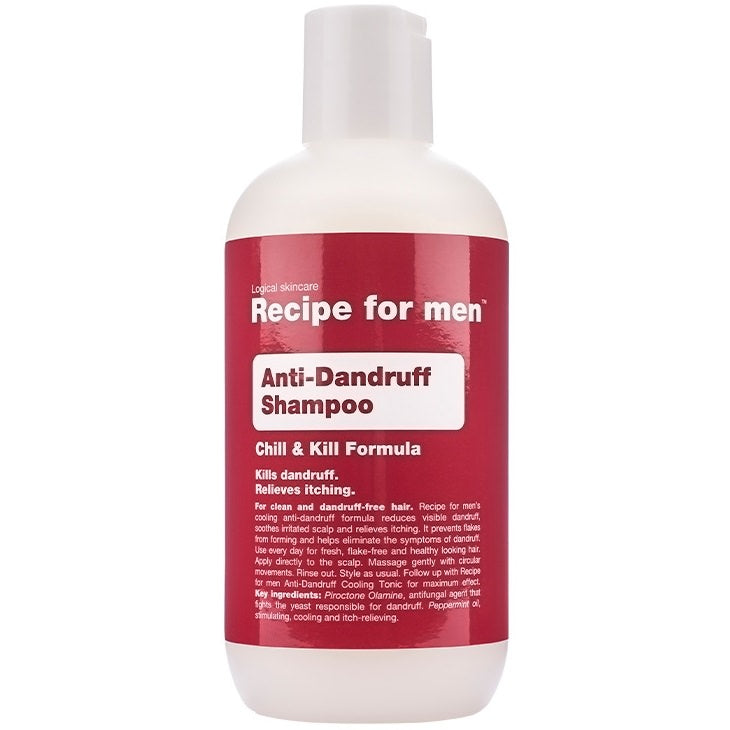 Recipe for men Anti-Dandruff Shampoo biedt een effectieve oplossing voor roos en een jeukende hoofdhuid, speciaal ontworpen voor mannen. Deze shampoo reinigt grondig en kalmeert de hoofdhuid, terwijl het overtollige talg en schilfers worden verwijderd. Met een milde formule die rijk is aan stimulerende ingrediënten wordt de hoofdhuid verzacht en gehydrateerd, terwijl irritatie wordt verminderd. De toegevoegde piroctone olamine helpt de vorming van roos te voorkomen en herstelt de natuurlijke balans van de hoofdhuid. Na gebruik voelt je haar schoon, fris en veerkrachtig aan, vrij van roos en ongemak.
