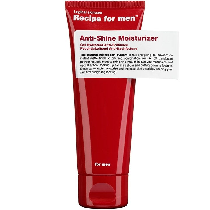 Recipe for men Anti-Shine Moisturizer is een verfrissende gel die speciaal is ontworpen voor de vette en gemengde huid. Het natuurlijke microparelsysteem in deze stimulerende gel zorgt direct voor een matte finish, waardoor overtollige glans wordt geëlimineerd. Door een zacht kristalpoeder wordt het glimmen van de huid op natuurlijke wijze verminderd, dankzij zijn mechanische en optische werking die overtollig talg absorbeert en reflecties vermindert. Daarnaast hydrateren botanische extracten de huid en verhogen ze de elasticiteit, waardoor je huid stevig en jeugdig blijft ogen. Verwen je huid met deze effectieve moisturizer voor een langdurig matte en verzorgde uitstraling.