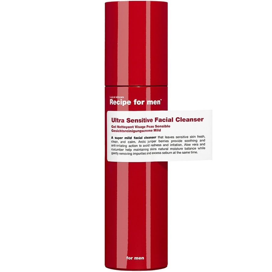 Recipe for Men Ultra Sensitive Facial Cleanser biedt een milde en geurloze reiniging, speciaal ontworpen voor de gevoelige mannenhuid. Deze dermatologisch geteste formule behoudt de natuurlijke vochtbalans van de huid terwijl het onzuiverheden en overtollige vettigheid zachtjes verwijdert. Verrijkt met kalmerende ingrediënten, zoals amandelolie, verzacht het de geïrriteerde huid en laat het glad en verfrist aanvoelen. Ontdek een verjongde en stralende teint, vrij van irritatie en volledig gehydrateerd.