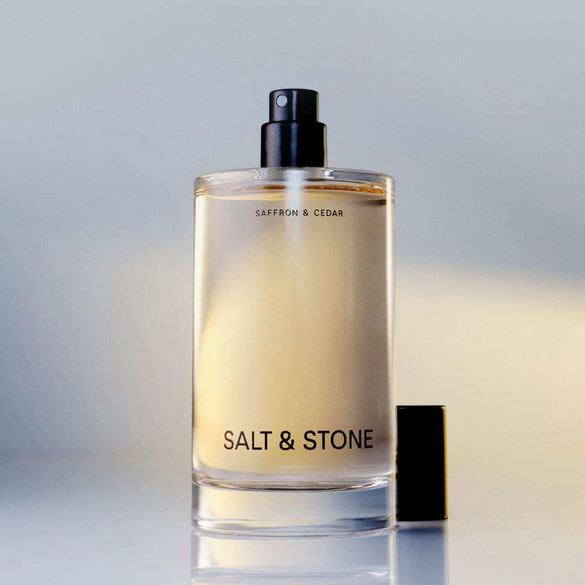 Salt & Stone Body Mist Saffron & Cedar heeft een warme, kruidige geur die je zintuigen verleidt. De topnoten van saffraan en neroli brengen een exotisch en kruidig aroma, terwijl de hartnoten van jasmijn, eikenmos en surfwas een frisse en houtachtige toon toevoegen. De basisnoten van suikerriet en cederhout zorgen voor een warme, aardse basis die de geur mooi in balans brengt.