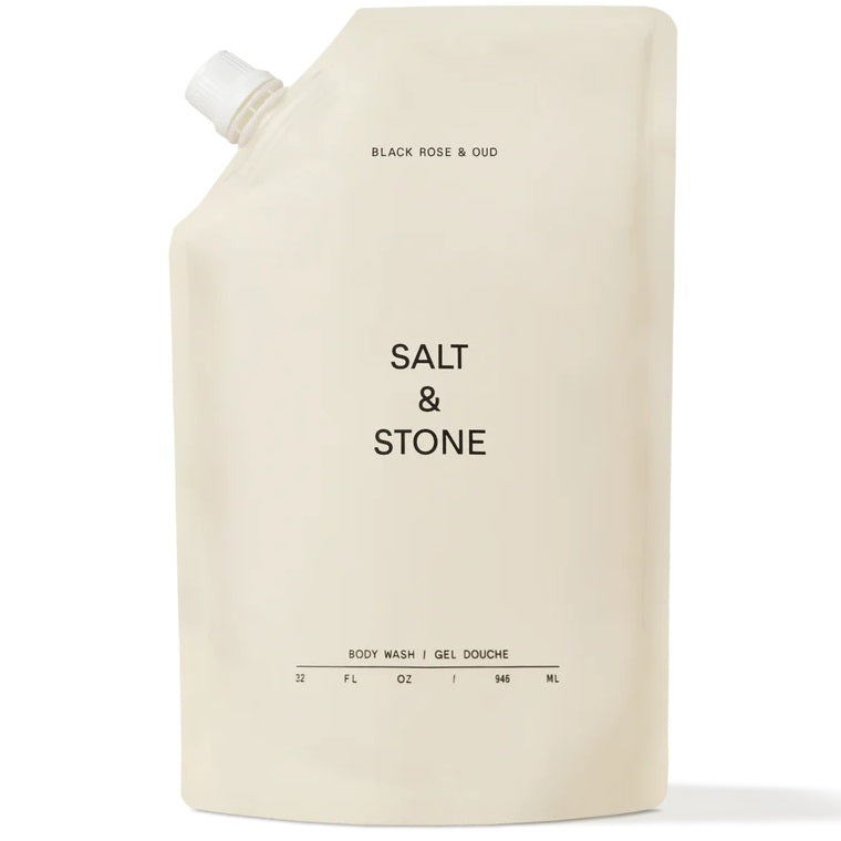 Salt & Stone Body Wash Black Rose & Oud Refill is een ideale dagelijkse reiniger voor een gezonde, stralende huid. Deze body wash bevat een rijke mix van natuurlijke, plantaardige ingrediënten uit de oceaan, antioxidanten en hydraterende elementen om de huid te herstellen. Dankzij de krachtige combinatie van zeewierextracten en spirulina wordt de geïrriteerde en aan de elementen blootgestelde huid op milde wijze gekalmeerd en geregenereerd. De antioxidanten in het bosbessenextract en vitamine C beschermen de huid tegen schadelijke effecten van vrije radicalen die ontstaan door blootstelling aan de zon. Niacinamide, ook wel bekend als vitamine B3, heeft een bewezen effect op het creëren van een sterkere, gezonde huidbarrière en het verbeteren van de huidtextuur. Hyaluronzuur zorgt voor een diepe hydratatie tijdens het reinigen en de toevoeging van probiotica behoudt de natuurlijke balans van de huid.