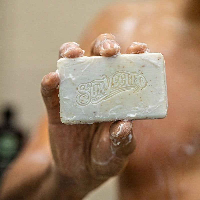 Suavecito Body Soap Whiskey Bar heeft een krachtige werking dankzij de speciale formule. De combinatie van puimsteen en zemelen zorgt voor een effectieve exfoliatie van ruwe huid op probleemzones, zoals ellebogen en hielen. Deze ingrediënten verwijderen dode huidcellen en onthullen een gladdere, zachtere huid. Daarnaast bevat de zeep havermout, dat bekend staat om zijn hydraterende eigenschappen. Het helpt vocht vast te houden, waardoor de huid gehydrateerd blijft en een gezonde uitstraling krijgt. Ervaar de revitaliserende werking van Suavecito Body Soap Whiskey Bar en geniet van een stralende en verzorgde huid.