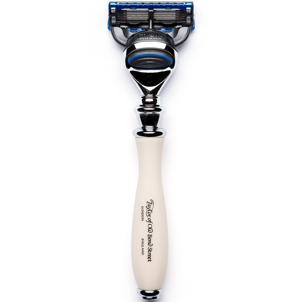 Taylor of Old Bond Street Fusion Scheermes Victorian Ivory combineert tijdloze elegantie met moderne functionaliteit. Met een handvat met ivoorkleurige afwerking en een fusion kop biedt dit scheermes een perfecte balans tussen stijl en prestatie. Ontworpen voor gebruik met Gillette Fusion-scheermesjes, biedt dit scheermes een glad en nauwkeurig scheerresultaat, terwijl het tegelijkertijd een luxueuze scheerervaring biedt. Met zijn klassieke uitstraling en hoogwaardige constructie is dit scheermes een must-have voor elke moderne gentleman.