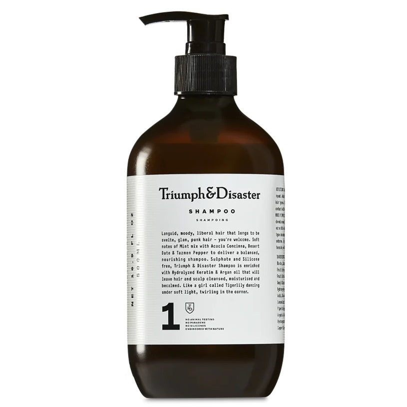 Triumph & Disaster Shampoo is verrijkt met een krachtige formule om het haar optimaal te verzorgen. Het bevat Tazman peper, dat de gevoelige en geïrriteerde hoofdhuid kalmeert en behandelt. Al eeuwenlang wordt dit veelzijdige ingrediënt door de inheemse bevolking van Tasmanië gebruikt als tonicum voor een gezonde hoofdhuid. Daarnaast biedt arganolie spankracht en flexibiliteit aan uitgedroogd en gestrest haar, terwijl het natuurlijke voedende kwaliteiten levert voor het haar. Geniet van een verzorgende en revitaliserende ervaring met Triumph & Disaster Shampoo.