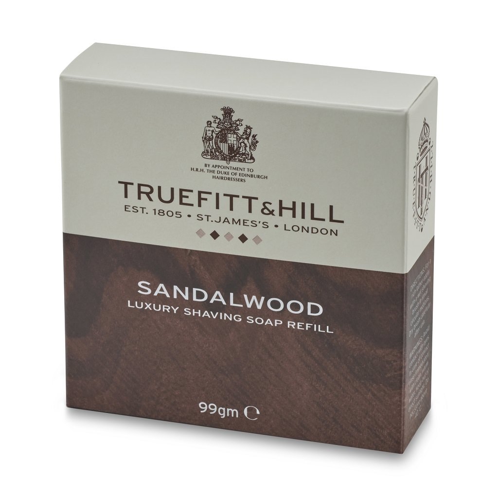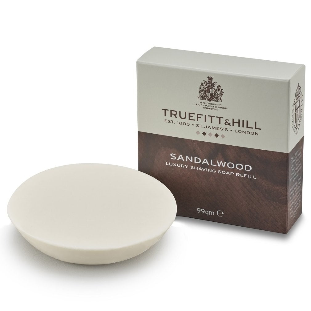Truefitt & Hill Sandalwood Scheerzeep - Navulverpakking biedt een rijk schuim voor een gladde scheerbeurt en heeft een warme geur van sandelhout met frisse en kruidige tonen. Lees meer